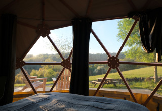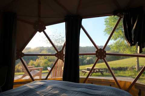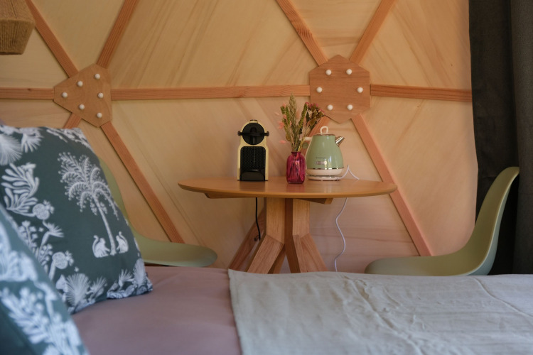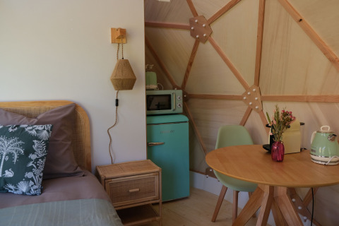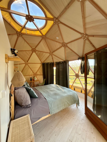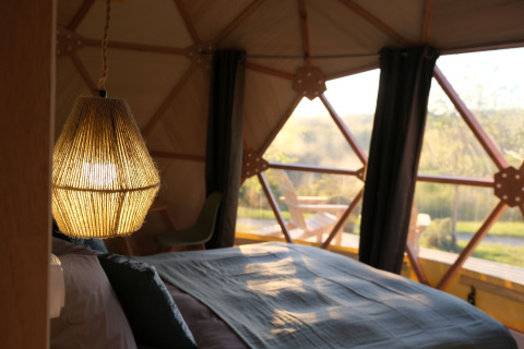 La dome está diseñada para una estancia romántica y cuenta con un espacio de descanso único para 2 personas, en un ambiente cálido y luminoso, totalmente conectado con la naturaleza.