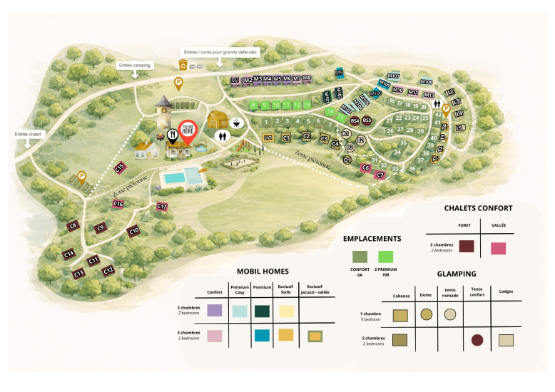 Camping Domaine de la Faurie es un encantador camping de 4 estrellas situado en la hermosa zona natural del Lot. Aquí todo gira en torno a la tranquilidad, la naturaleza y el disfrute. El camping está en el corazón del Parque Natural Regional Causses du Quercy y ofrece un ambiente cálido y auténtico con mucha atención por los detalles. Piensa en jardines llenos de flores, muros de piedra característicos y vistas panorámicas sobre el valle. Con dos piscinas, un restaurante con platos locales y numerosas actividades para jóvenes y mayores, este es el lugar ideal para unas vacaciones relajantes en plena naturaleza.