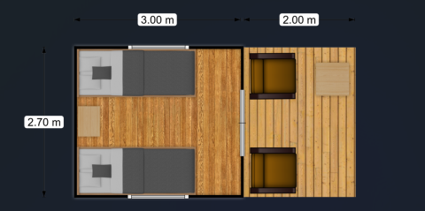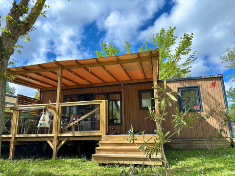 Pasa la noche en un lodge compacto sobre pilotes: simple, acogedor y rodeado de verde. Ideal para pasar una noche solo o en pareja. El interior es básico pero bien pensado; afuera te espera una terraza cubierta con muebles de jardín para disfrutar de mañanas tranquilas y noches bajo las estrellas.