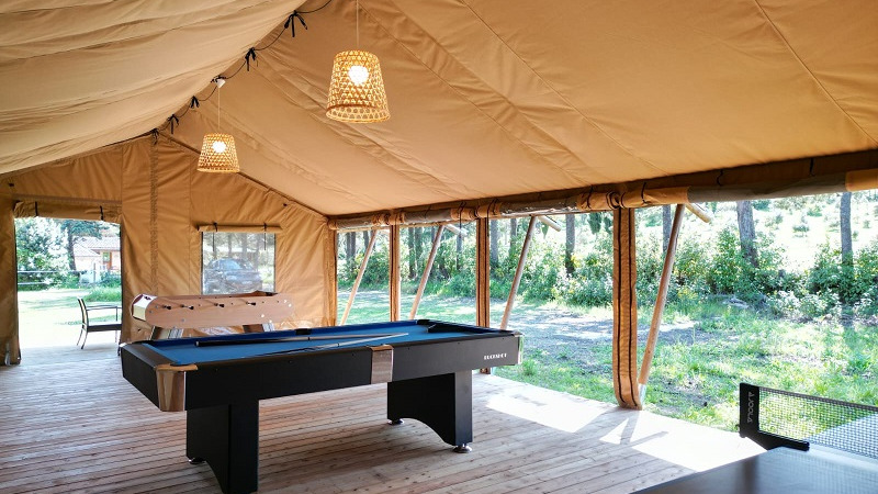 Sí, hay una piscina al aire libre en este glamping de Occitania.