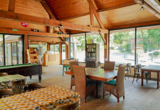 Sumérgete en la piscina climatizada del parque acuático y luego deslízate hasta la segunda piscina con tobogán y zona para niños pequeños. Alrededor del agua hay tumbonas y sombrillas para tomar el sol cómodamente en la verde Dordoña. En julio y agosto, el snack bar ofrece comidas sencillas y sabrosas para comer in situ o para llevar, mientras que las barbacoas de carbón están listas para tus propios momentos de asado. Todos los días se puede reservar pan fresco y bollería, y el pequeño supermercado dispone de productos locales y de larga duración. Los niños se divierten en el parque infantil, la cama elástica y el castillo hinchable junto a la piscina y el bar. Por las noches, los concursos, conciertos, karaoke y cine al aire libre proporcionan ambiente, que se complementa con futbolín, billar, ping-pong, pistas deportivas, petanca, juegos de mesa, libros o un paseo culinario. Además, siempre es divertido pasar las tardes pescando junto al Vézère.