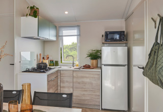 Escapa del ajetreo diario en una atmosférica tienda selvática de 25 m², perfecta para cuatro personas. Disfruta de dos dormitorios separados: uno con una cómoda cama de matrimonio de 160 x 200 y otro con dos camas individuales de 80 x 200. Prepara comidas sencillas en la cocina compacta con frigorífico, microondas, placa eléctrica y cafetera, completa con vajilla y cubertería. Relájate en la terraza cubierta con mesa y sillas de jardín mientras te sientes cerca de la naturaleza. No está permitido fumar y se admiten mascotas por un suplemento. Esta tienda de campaña en la selva combina la comodidad práctica con una experiencia de glamping aventurera.