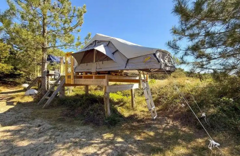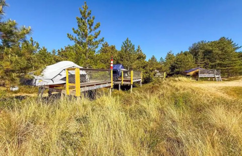 Bienvenido al Dachzelt Dorf Amrum: aquí el aire fresco del Mar del Norte, el paisaje de dunas y la sensación especial de dormir al aire libre se funden en una experiencia inolvidable. Las acogedoras tiendas de campaña de la azotea ofrecen espacio para 2 a 4 personas, por lo que son perfectas para parejas, familias o grupos pequeños. Para quien no quiera dejar al perro en casa: en cada aldea hay una plataforma separada para los dueños de perros.
