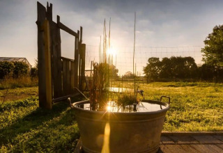 Delante de la tienda hay bancos y una barbacoa, ideales para veladas relajantes al aire libre. Las instalaciones sanitarias con ducha y retrete están a unos 80 metros.