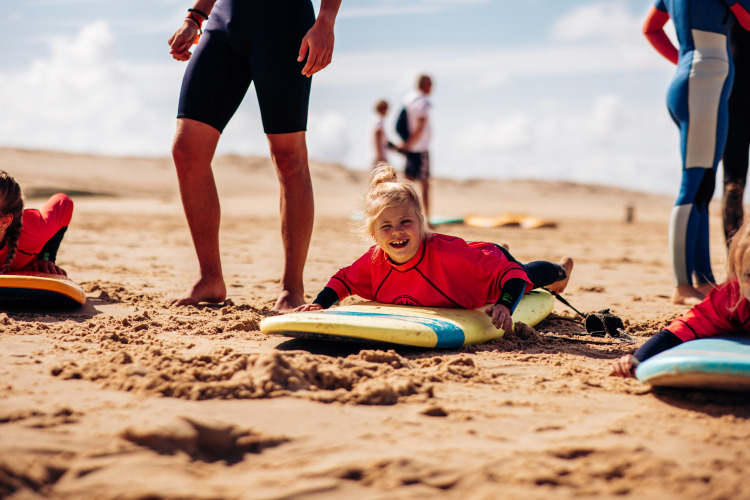 Disfruta de unas vacaciones de surf en familia en Surf Tribe, en Sulac-sur-Mer, un camping con bonitos alojamientos en la costa atlántica. Apúntate a clases de surf y yoga, date un chapuzón en la piscina y conoce a otros surfistas en las cenas.