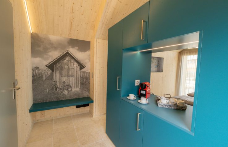 El encantador Räbhüüsli tiene capacidad para dos personas en un espacio generoso y combina la arquitectura tradicional suiza con el diseño contemporáneo. El alojamiento dispone de una cómoda cama doble, un cuarto de baño privado con ducha y WC, y una terraza privada amueblada con vistas al jardín. Las comodidades modernas, como Wi-Fi, televisión y conexiones USB, proporcionan un confort contemporáneo, mientras que el café à discrétion está siempre disponible. El precio incluye un desayuno completo, para que empieces el día con buen pie. Los materiales de alta calidad y la cuidada distribución también hacen que las estancias largas sean especialmente agradables.
