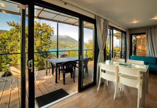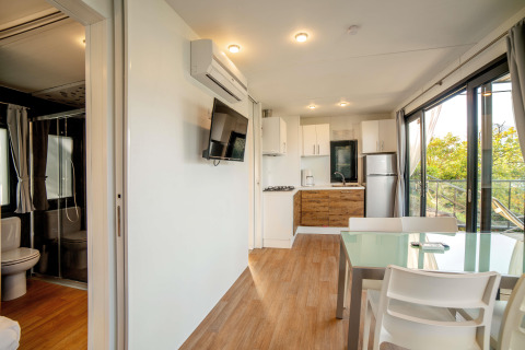 La Cottage Next XL Panorama es el lugar ideal para unas vacaciones en familia, donde el confort y la naturaleza se unen. Este amplio alojamiento ofrece todo lo que necesitas para una estancia relajante. Cuenta con dos habitaciones: una con una cómoda cama doble y otra habitación con dos camas individuales y una cama plegable, ideal para los niños. El baño es moderno y práctico, para que disfrutes de todas las comodidades de casa. La cocina abierta está completamente equipada y en la acogedora sala de estar podéis relajaros juntos tras un día lleno de aventuras, mientras el aire acondicionado asegura una temperatura agradable. La amplia terraza cuenta con un conjunto completo de muebles de jardín, para que puedas comer al aire libre, jugar o simplemente disfrutar de la hermosa naturaleza. Aquí encontrarás todo lo necesario para unas vacaciones inolvidables.