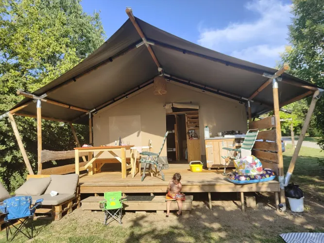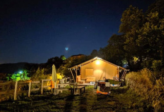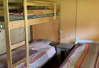 Experimenta la máxima aventura al aire libre con la tienda safari Premium Greencamp. Construida sobre una sólida tarima de madera elevada, este robusto alojamiento para cinco personas ofrece una sala de estar increíblemente espaciosa, dos amplios dormitorios y una gran veranda diseñada para una relajación total. Dentro, la tienda está decorada lujosamente para ofrecer la máxima comodidad bajo la lona. Relájate en sofás lounge de alta calidad, disfruta de un descanso reparador en colchones box-spring y despierta con un café recién hecho de tu propia cafetera Nespresso. La cocina exterior móvil hace que cenar al aire libre sea muy fácil, mientras que la hamaca incluida y la barbacoa de gas (disponible en la mayoría de las ubicaciones) crean el escenario perfecto para tardes perezosas y noches acogedoras. Todo está completamente preparado para tu llegada—¡solo trae tus propias toallas de mano y de cocina! Vive la auténtica magia de dormir bajo las estrellas con todas las comodidades modernas del hogar. Y lo mejor de todo, con la limpieza final incluida, tus vacaciones serán absolutamente despreocupadas desde el primer hasta el último momento.
