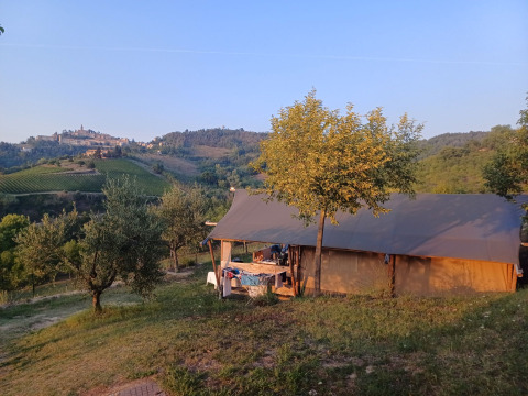 Situado en una pintoresca colina, Greencamp Agricampeggio Tasteria ofrece una escapada idílica e íntima de glamping en el corazón de Le Marche. Esta finca de pequeño tamaño brinda impresionantes vistas de 360 grados a colinas onduladas y a las asombrosas montañas de Monte Sibillini. Los huéspedes pueden relajarse en la refrescante piscina al aire libre, disfrutar de auténticas cenas italianas comunitarias o cocinar en el tradicional horno de leña. Con hermosas playas y majestuosas montañas a solo un corto trayecto en coche, es el destino perfecto para experimentar el encanto puro, intacto y la tranquilidad del centro de Italia.