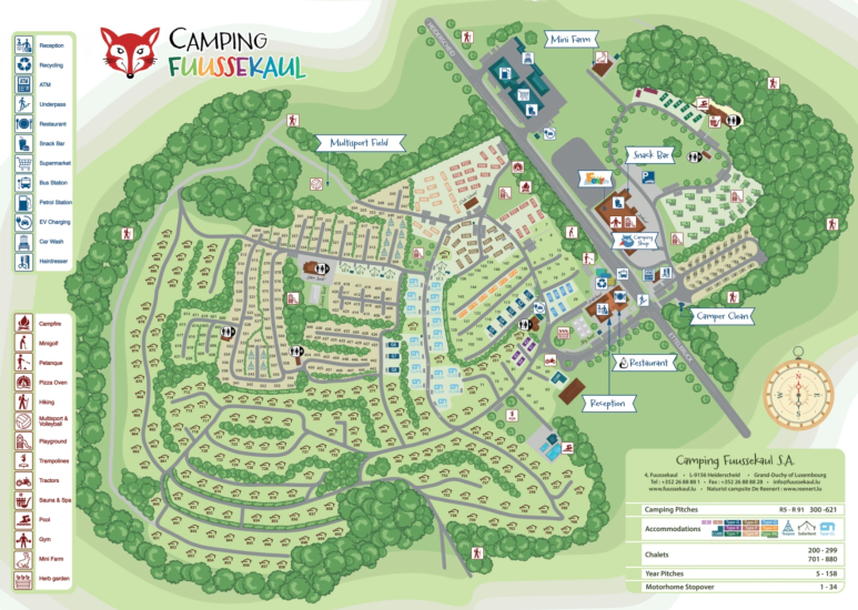 Camping Fuussekaul es el camping familiar perfecto para quienes buscan unas vacaciones animadas y completas en Luxemburgo. El ambiente es amable y acogedor, con diversión para grandes y pequeños. Desde un refrescante chapuzón en la piscina exterior hasta jugar en los parques infantiles o acariciar animales en la granja infantil; siempre hay algo que hacer. Durante las vacaciones, el entusiasta equipo de animación ofrece un programa repleto de diversión y aventura. El paseo en tractor clásico también es un verdadero éxito entre los niños. Gracias a las numerosas instalaciones, aquí nunca tendrás un momento de aburrimiento. Camping Fuussekaul es el lugar ideal para crear recuerdos juntos.