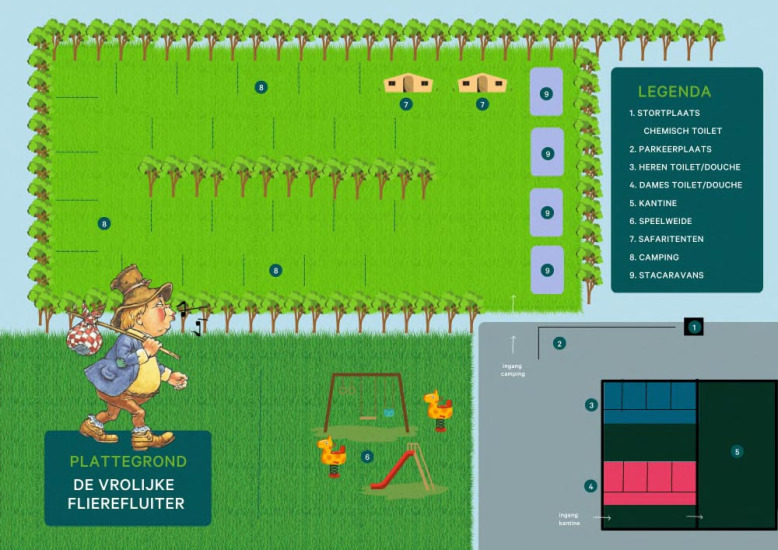 - ¿Cuál es el horario de entrada y salida en Tienda safari + aseo?La facturación en Minicamping de Vrolijke Flierefluiter comienza en 15:00. La salida debe hacerse antes de 10:00.