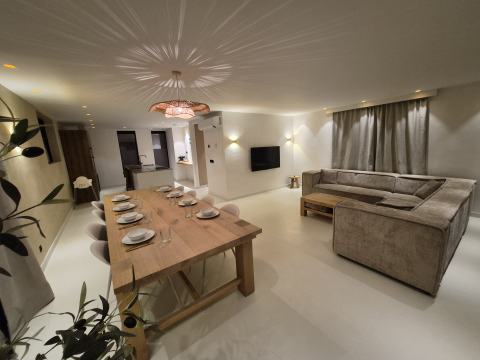 La villa es espaciosa y está decorada con estilo, con una luminosa sala de estar, grandes ventanales y una decoración elegante en la que los materiales naturales y los tonos cálidos son protagonistas. El interior transmite calma y calidad. La moderna cocina abierta está totalmente equipada con electrodomésticos de alta gama y ofrece todo el espacio necesario para cocinar juntos y disfrutar de largas y acogedoras cenas con familiares o amigos.