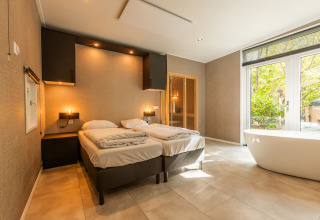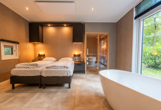 Wat een geweldig mooie ligging heeft dit park! Midden in het bos, veel privacy rondom de huisjes. We hadden welness lodge Esberg. Heerlijk met sauna, hottub en sunshower en een heerlijk bad. Het was allemaal erg schoon en netjes en we hadden tijd te kort om van alles gebruik te maken. Ook nog heerlijk de hei op geweest voor een pittige wandeling. We willen heel graag nog een keer terug komen, nu met alle kids in een welness familiehuis. Aanrader.