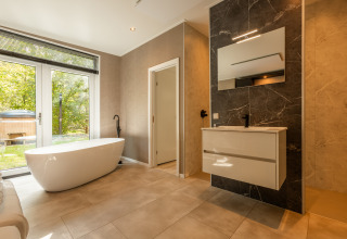 Siente el silencio de Drenthe en cuanto llegues a la Bosrand Wellness Cabin Premium en Ruinen. Al borde del Parque Nacional Dwingelderveld te espera un lugar donde el confort y la naturaleza se unen sin esfuerzo. Retírate al lujoso espacio wellness con bañera independiente, sauna de infrarrojos, ducha exterior y jacuzzi de leña. La sala de estar abierta, con zona de estar, comedor y cocina totalmente equipada, ofrece todo para un día relajante en el interior. Por la noche te sumerges en camas preparadas, mientras que fuera reina la tranquilidad del bosque. Con suaves albornoces, iluminación cálida y un jardín privado con terraza, cada minuto aquí se siente como un verdadero lujo, un oasis de paz para dos, escondido en el verdor de Drenthe.