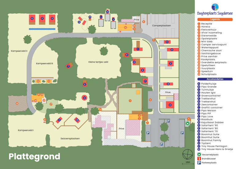Verassende leuke camping. Met zeer veel diversiteit in huisjes. Wij zaten in de grote boomhut en hadden een mooi privé sanitair het grote sanitairgebouw zag er ook prima uit. Een groot zwembad/ ballorig / lasergame / restaurant etc op loopafstand Ook is het oude winkelcentrum en op loopafstand waar je op dinsdagochtend een gezellige markt kan vinden en de kinderboerderij. De camping is klein maar groot genoeg met de alpacas een speeltuintje en ruime camperplaatsen. Tip maak je vakantie af met een ontbijt. Deze goed gevulde picknickmand smaakte erg goed. En zorg bij regen voor regenlaarzen want met een goede bui blijft het wel drassig.