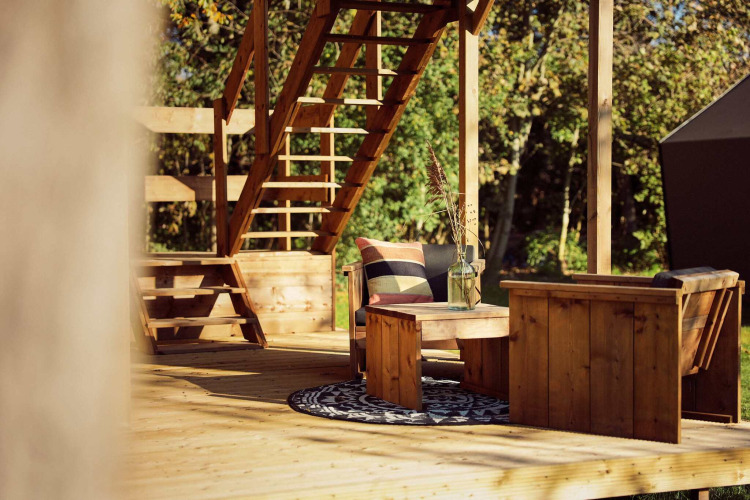 ¿Vacaciones en pareja? El Arriba dispone de dos plantas con hermosas vistas sobre el agua y los bosques. Con capacidad para dos personas, este alojamiento es perfecto para parejas que busquen unas vacaciones románticas en plena naturaleza, pero también es una excelente opción para amigos o parejas que busquen un lugar de glamping espacioso y lujoso.