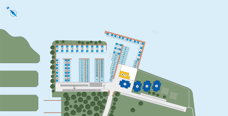 Con 6 plazas de aparcamiento fijas en el puerto deportivo y muchas plazas de aparcamiento gratuitas in situ, no tendrás que preocuparte por aparcar el coche.