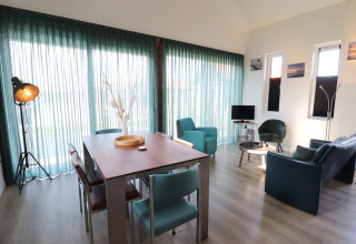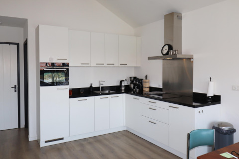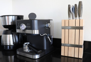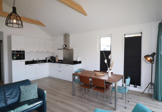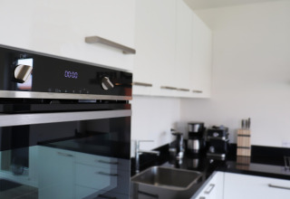 En el interior encontrarás una zona de estar luminosa y espaciosa donde puedes relajarte después de un día al aire libre. La cocina está completamente equipada para que cocinar en vacaciones sea fácil: hay horno, microondas, cafetera espresso y lavavajillas, así puedes disfrutar de desayunos largos y cenas tranquilas sin preocuparte por los platos. El Wi‑Fi gratuito te mantiene conectado, ya sea que quieras ver una película en streaming o planificar tu próxima aventura.