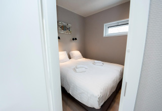 Desde el embarcadero entras directamente en la acogedora planta baja. Aquí encontrarás dos cómodos dormitorios. El dormitorio principal cuenta con una cama doble con dos colchones individuales, mobiliario elegante y prácticos puntos de carga USB y USB-C junto a la cama. El segundo dormitorio ofrece dos camas individuales, también con puntos de carga – ideal para familias, amigos o un grupo pequeño.