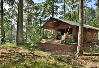 ¿Te gusta la comodidad y el confort, pero quieres estar al aire libre? En un hermoso paraje en medio del bosque Veluwe y cerca de las instalaciones del Camping Samoza, puedes alquilar una lujosa tienda Veluwe Lodge. En esta lujosa y amplia tienda de safari, podrás disfrutar plenamente de la vida al aire libre combinada con la comodidad necesaria y un toque de lujo. En el Veluwe Lodge duermes en una cómoda cama, tienes tu propio cuarto de baño con una gran ducha a ras de suelo, una cocina completa con lavavajillas y horno microondas combinado, ¡y una preciosa y espaciosa terraza cubierta! El lodge se puede abrir completamente por delante, ¡lo que te permite disfrutar plenamente de la vida al aire libre en el Camping Samoza! No se puede acceder a los alojamientos en coche, ya que están situados en una montaña en medio del bosque. Aparcas el coche al pie de la montaña y luego puedes llevar tus cosas al Albergue con la carreta.