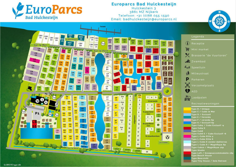 EuroParcs Bad Hulckesteijn, situado en la tranquila Nijkerkernauw, es un paraíso para los amantes de los deportes acuáticos. Disfruta del surf, la vela o date un chapuzón en la piscina cubierta. El cercano puerto deportivo y la playa ofrecen diversión acuática adicional. Descubre la belleza del Veluwe y los pólderes de Flevoland, o explora las ciudades de Nijkerk y Amersfoort. Para un subidón de adrenalina, Walibi Holland está muy cerca. Termina el día con una sabrosa comida en la Brasserie de Vuurtoren, en el mismo camping.