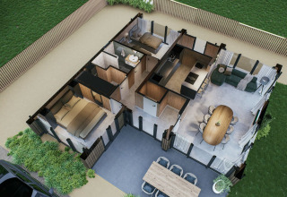 En el exterior, el amplio porche con muebles de terraza invita a disfrutar de la vida al aire libre durante todo el año. En el jardín vallado encontrarás un cómodo conjunto de salón, una ducha exterior y un trampolín para mayor diversión. La lodge se encuentra en un lugar tranquilo en el borde del parque, en medio de los bosques de la Veluwe cerca de Voorthuizen. En las inmediaciones hay instalaciones de juego y servicios prácticos, mientras que la naturaleza es perfecta para caminatas y paseos en bicicleta.