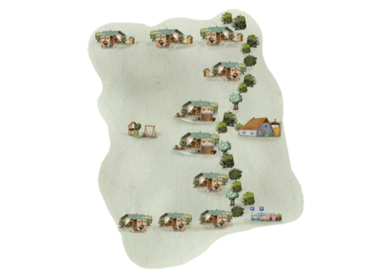 La cabaña tienda ofrece todo lo que necesitas para una estancia relajante. Dentro, encontrarás una amplia zona de estar con un acogedor sofá y una gran mesa de comedor donde podrás reunirte con toda la familia o los amigos. ¿Tienes dudas sobre si entrar o salir? En la veranda puedes sentarte a la sombra bajo el toldo, con una mesa de picnic y tumbonas para relajarte. En el exterior, ¡puedes disfrutar de una bañera de hidromasaje!