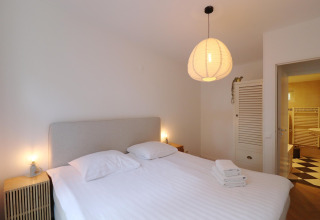 Por dentro, la casa de vacaciones se siente cálida, acogedora y funcional. Con tres dormitorios y espacio para hasta cinco huéspedes, hay suficiente lugar para que todos puedan relajarse en su propio rincón. La cocina americana facilita y hace divertido cocinar juntos, ya sea para preparar un desayuno sencillo o una cena completa con productos locales de la región.