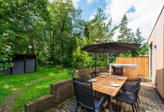 En el exterior, encontrarás un jardín cuidadosamente mantenido donde puedes empezar el día con un café al sol o terminarlo con una copa relajante bajo las estrellas. Enciende la barbacoa en las tardes cálidas, disfruta de largas sobremesas en la mesa exterior y simplemente disfruta del silencio de la naturaleza. El jacuzzi privado es el punto culminante: sumérgete en el agua caliente, siente cómo tus músculos se relajan y deja que el estrés cotidiano desaparezca.