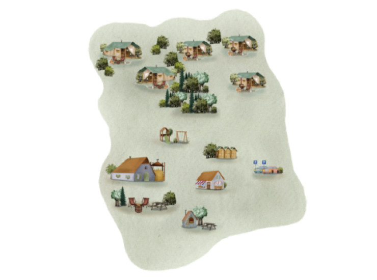 La cabaña tienda ofrece todo lo que necesitas para una estancia relajante. Dentro, encontrarás una amplia zona de estar con un acogedor sofá y una gran mesa de comedor donde podrás reunirte con toda la familia o los amigos. ¿Tienes dudas sobre si entrar o salir? En la veranda puedes sentarte a la sombra bajo el toldo, con una mesa de picnic y tumbonas para relajarte.