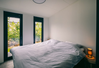 Puedes elegir entre dos estilosos tipos de bungalow para 6 personas. El primero (NL-3249-16) es un espacioso bungalow en planta baja con tres dormitorios. Dos dormitorios disponen de cama doble, y el tercero tiene dos camas individuales que puedes juntar fácilmente. Hay dos baños modernos con duchas, uno de ellos en suite, además de un aseo independiente, ideal para cuando todos se están preparando a la vez.