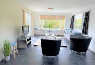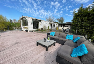 Chalet is goed verzorgd, alles is aanwezig.Groot terras met uitzicht op water en overkapping aanwezig. Rondom het park is de mogelijkheid honden uit te laten in een klein natuurgebiedje en de landerijen er om heen.