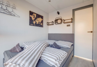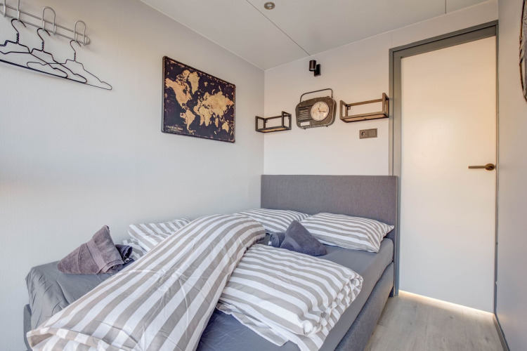 Bermuda cuenta con dos dormitorios bien distribuidos: uno con cama doble y otro con litera, lo que la hace una opción estupenda para parejas, amigos o una familia pequeña. El baño moderno incluye ducha, lavabo e inodoro, por lo que tendrás todas las comodidades diarias al alcance de la mano. Gracias a la calefacción, la casa flotante es un lugar agradable para alojarse incluso fuera de los meses de verano.