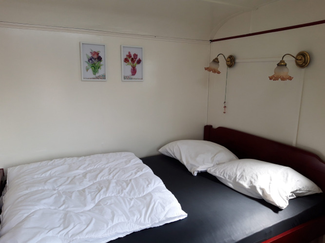 El Pipowagen Snuf tiene una habitación principal con cama de matrimonio equipada con un colchón grueso (2,00 x 1,40). También hay una habitación con literas (1,90×0,80).