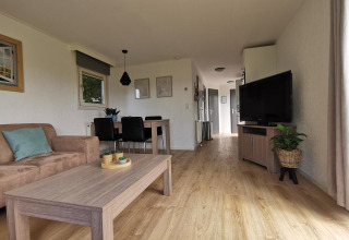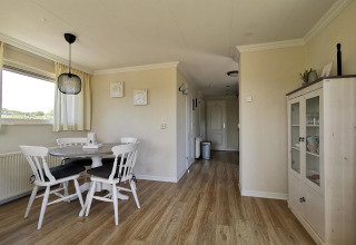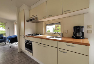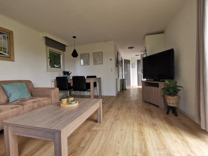 El luminoso y aireado salón está decorado con una zona de estar y un comedor para 4 personas. Perfecto cuando quieres cenar juntos o jugar a algún juego. Por supuesto, también hay una televisión de pantalla plana para que puedas relajarte viendo una película después de un estupendo día de sol, mar y playa. En la cocina adyacente encontrarás todo lo que necesitas para mostrar tus dotes culinarias, incluyendo nevera, congelador, microondas y cafetera.
