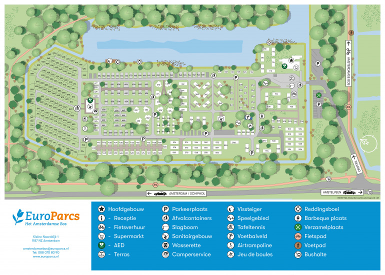 EuroParcs Het Amsterdamse Bos está situado en el soleado lado sur del Amsterdamse Bos. Rodeado de naturaleza, árboles, agua e incluso Highlanders escoceses. El Amsterdamse Bos y sus vastos pólderes y bosques son ideales para excursiones en bicicleta y paseos. Descubre Ámsterdam, un cofre del tesoro de la cultura y la historia. Navega por los canales, descubre numerosos museos y admira las casas de los canales. Lleva a los niños a Artis o al Museo de la Ciencia NEMO. O visita Zaanse Schans, Alkmaar o Volendam.