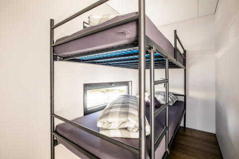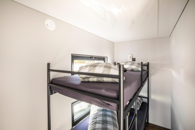 Marina Sunrise cuenta con dos acogedoras habitaciones. Una habitación tiene una cama doble; la otra, una divertida cama doble tipo altillo, ideal para niños o para quienes disfrutan de un rincón de descanso acogedor. En la sala de estar hay un sofá cama individual, así que todos tienen su propio espacio para dormir. El moderno baño dispone de ducha, lavabo y aseo.