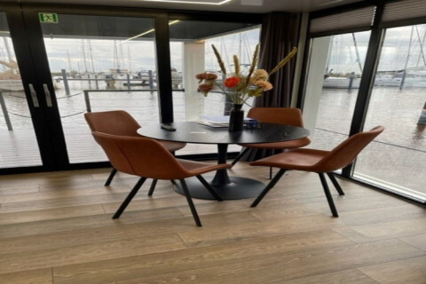 Increíblemente divertido dormir en una casa flotante por una vez. La casa flotante es extremadamente lujosa y está totalmente equipada. La única pena es que el salón es un poco más difícil de calentar en invierno. Por lo demás, una vista preciosa y absolutamente superior.