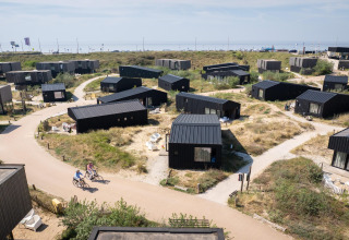El propio parque vacacional tiene poco tráfico, lo que lo mantiene tranquilo y seguro. No se puede aparcar directamente en el lodge, pero hay un aparcamiento central donde se puede estacionar un coche por lodge. Los coches adicionales pueden aparcarse en el parking público de la playa (se aplican cargos).