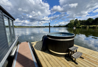 A orillas del Mookerplas se encuentra una acogedora houseboat con un añadido muy especial: un jacuzzi privado en una plataforma flotante, lleno de agua natural y solo para vosotros. Mientras el agua murmura suavemente, os espera un lugar para relajaros juntos después de un día de navegación, ciclismo o senderismo por los bosques cercanos. Grandes ventanales ofrecen en el interior unas vistas panorámicas y un ambiente cálido en la sala de estar. Los dormitorios están equipados de manera práctica y confortable, con una cama doble tipo boxspring, una litera y una cama adicional en el sofá. Una cocina compacta y un baño moderno con ducha completan todo el conjunto. Gracias al wifi, aire acondicionado y una terraza directamente sobre el agua, esta houseboat combina confort con una experiencia de naturaleza pura, a poca distancia de Nimega y de acogedores restaurantes.