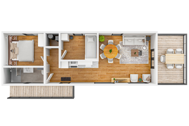 El Water Cube para 5 personas es un lodge de lujo que se extiende nada menos que 12 metros sobre el agua. Esto hace que parezca que vives literalmente sobre el agua, con una vista espectacular desde la amplia terraza cubierta. Un lugar único para familias o grupos de amigos que buscan tranquilidad, espacio y una estancia especial.