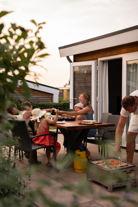 Esta casa de vacaciones de 50m2 para 2 a 4 personas está totalmente equipada. El chalet tiene dos dormitorios (2*2 camas individuales), un salón amplio y acogedor y una cocina abierta con microondas combinado, lavavajillas y espacio suficiente para poner una deliciosa comida en la mesa. La cocina está totalmente equipada, e incluye cafetera de filtro, hervidor de agua y tostadora. En verano, el aire acondicionado mantiene la casa fresca.