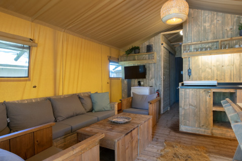 We vonden de tent verrassend gezellig, de houten afwerking gaf het een rustieke uitstraling en we vonden het buitenzwembad geweldig. De omgeving is perfect om te verkennen, hoewel we de afstand tot sommige attracties iets langer vonden dan verwacht.
