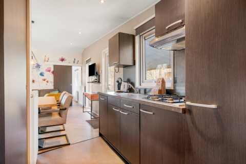El camping está bellamente ajardinado y la cabaña en la que estuvimos está muy bien resguardada entre los árboles. La cabaña es limpia y moderna, y está totalmente equipada.