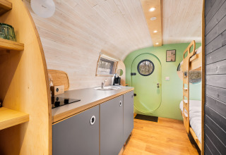 De Skycabin echt leuk, wij waren met zijn 3, oma met klein zoons. De jongens vonden de panakooi en speeltuin. Heerlijk, mogelijk dat ik met de andere kleinkinderen nog eens komen. De omgeving midden in het bos ook prachtig, je loopt zo het bos in.