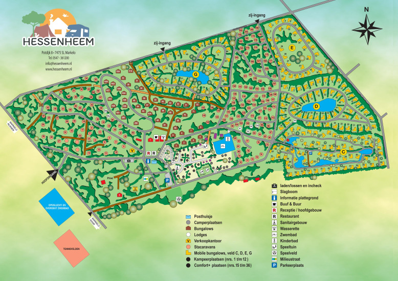 El Camping Hessenheem de Markelo te ofrece una experiencia única en la que la verde tranquilidad de Twente tiene mucho espacio. El centro al aire libre Hessenheem está abierto todo el año, para que puedas disfrutar plenamente de toda la belleza que ofrece esta zona en cada estación. Para los amantes del deporte, hay pistas de tenis frente al parque y oportunidades para darse un refrescante chapuzón en la piscina al aire libre. Además, la naturaleza de los alrededores ofrece muchas oportunidades para relajantes paseos y activas aventuras en bicicleta de montaña.