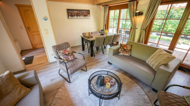 Desde fuera, este chalet de madera recuerda mucho a una cabaña de madera canadiense. No sólo eso, en el interior el Boekhorst también tiene 6 elementos de madera. El chalet, independiente y a ras de suelo, tiene un salón con zona de estar y televisión, y un comedor independiente. La cocina está equipada con una combinación de microondas, hervidor de agua y cafetera, entre otras cosas. Hay 2 dormitorios, 1 dormitorio con 1 cama doble y 1 dormitorio con 2 literas. También hay un cuarto de baño con cabina de ducha, lavabo e inodoro. En el exterior hay una terraza con muebles de jardín y aparcamiento para 1 coche. Hay wifi gratuito, pero ten en cuenta que el parque está situado en la naturaleza y que el wifi no es tan rápido como al que estás acostumbrado en casa.