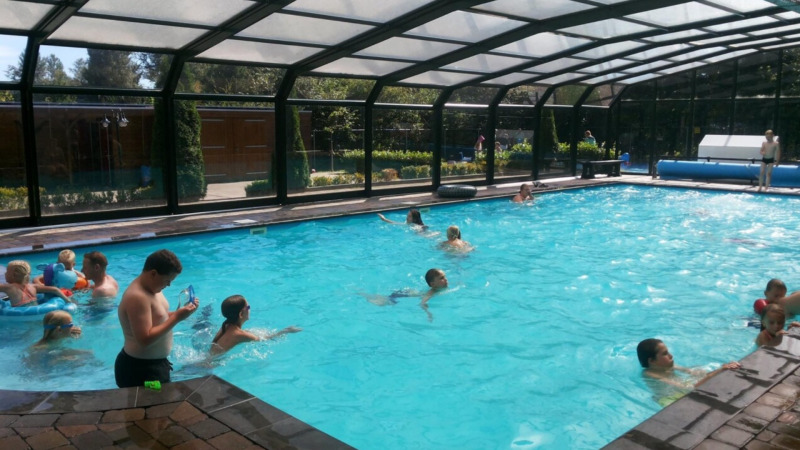Hay una piscina cubierta que está climatizada todo el año y cuyo techo puede abrirse cuando hace buen tiempo. Para niños pequeños y preescolares, hay una piscina exterior separada con un pequeño tobogán que abre de mayo a principios de septiembre. Cuando hace buen tiempo, puedes relajarte en el prado contiguo.