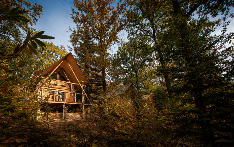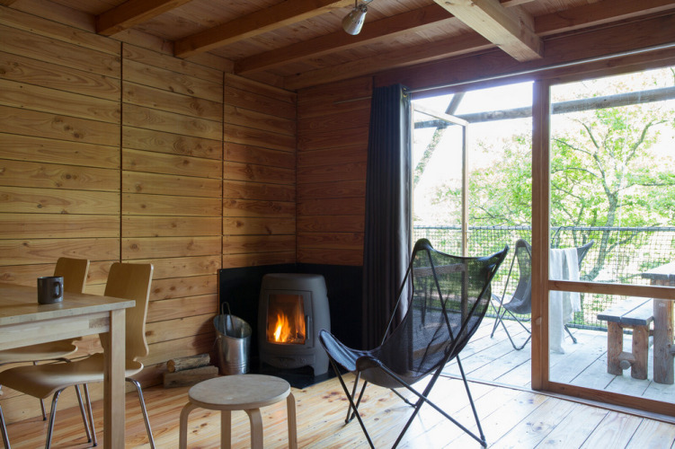 Las Cahuttes están sobre pilotes, en medio de los árboles, ¡lo que te proporcionará una experiencia inolvidable! Este alojamiento, con una amplia terraza de 16 m², tiene capacidad para 5 personas y está totalmente equipado.