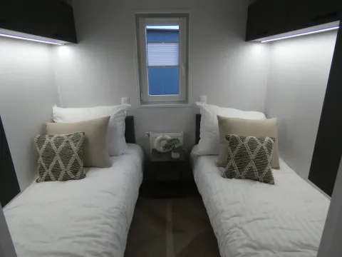 El Boslodge tiene dos dormitorios espaciosos: uno doble y otro con dos camas individuales.